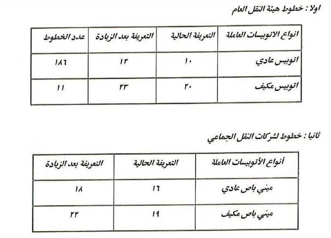 لم تقتصر التعديلات على «تعريفة» التاكسي الأبيض فقط، بل شملت أيضًا أتوبيسات النقل العام في القاهرة، حيث أوضحت المحافظة أن هذه الخطوة تأتي استجابة لتحريك أسعار البنزين والسولار، وتمت مراجعة «تعريفة» أتوبيسات النقل العام لتتناسب مع الزيادة الجديدة، إذ تسعى الحكومة إلى تحقيق العدالة في التسعير بما يضمن استمرارية تقديم الخدمات العامة دون تحميل الموازنة العامة أعباء إضافية، كما شددت على أن أي تعديل في «التعريفة» يتم وفق معايير دقيقة تراعي مصلحة المواطن في المقام الأول.