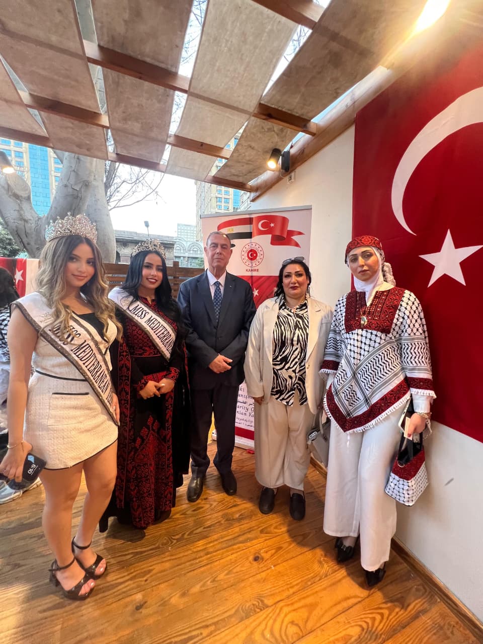 بدعوة كريمة من سعادة السفير صالح موتلو، سفير جمهورية تركيا بالقاهرة، لحضور فعاليات دعم تركيا لفلسطين بالقاهرة، تشرفت الدكتورة سميرة صلاح، رئيسة مسابقة ملكات جمال البحر المتوسط، بالحضور إلى جانب ملكة جمال البحر المتوسط الدولية لعام 2025 الدكتورة ميادة حامد، وملكة جمال البحر المتوسط للمراهقات لعام 2025 لي لي أحمد، والمشتركة الفلسطينية أحلام.