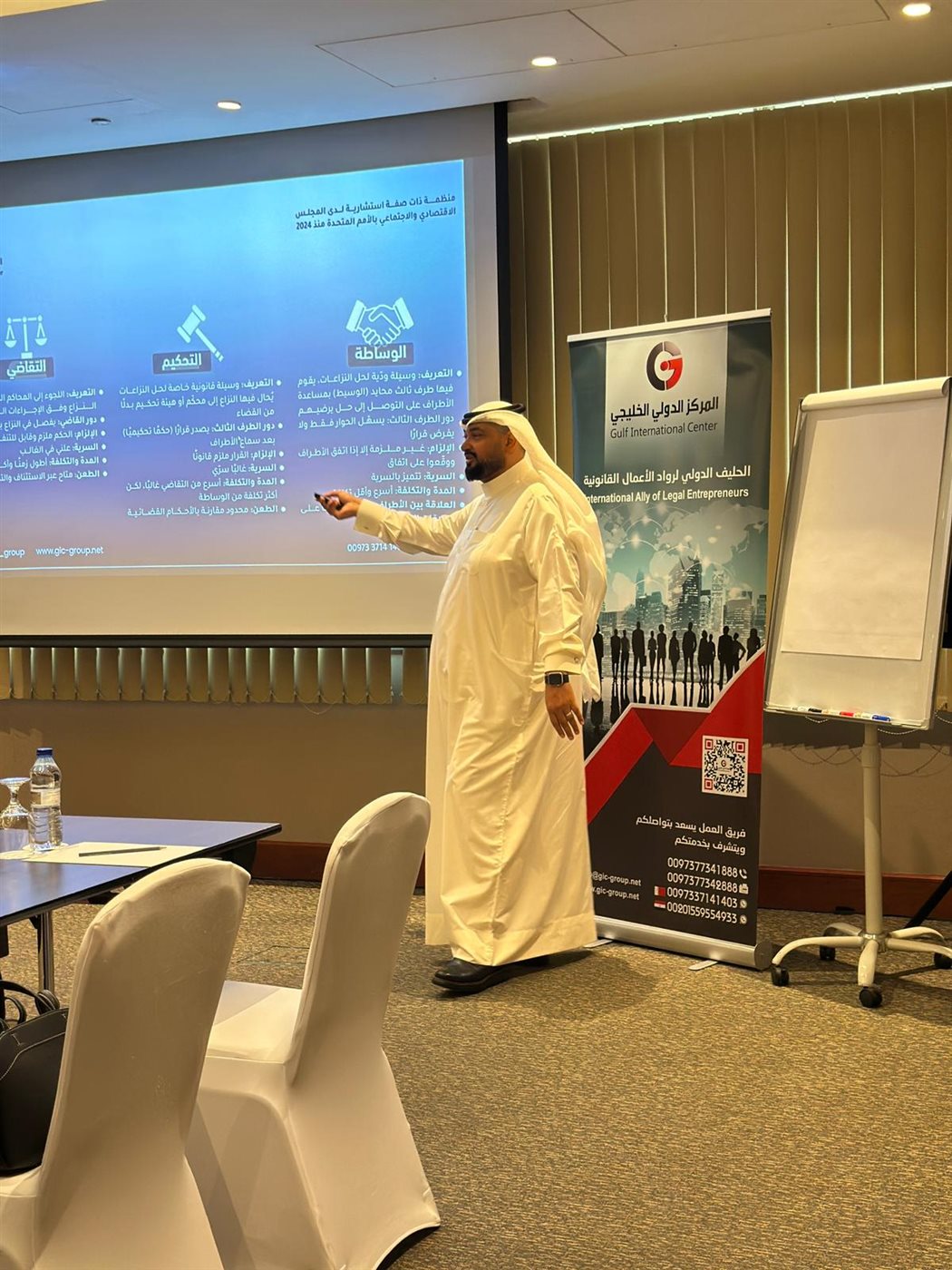نظّم المركز الدولي الخليجي لحلول الاعمال القانونية، منظمة ذات صفة استشارية لدى المجلس الاقتصادي والاجتماعي بالأمم المتحدة منذ عام 2024، ورشة عمل متخصصة بعنوان «الوساطة القانونية من حل النزاع إلى استقرار الأعمال»، قدّمها المستشار محمد جاسم الذوادي المدير التنفيذي للمركز وسيط تسوية منازعات محترف، وذلك بمشاركة نخبة من المهتمين بالشأن القانوني وقطاع الأعمال ورواد الشركات والمؤسسات.