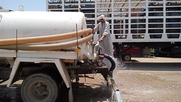 سيارات "رش المياه" تجوب شوارع قرى دشنا بقنا لتخفيف درجات الحرارة